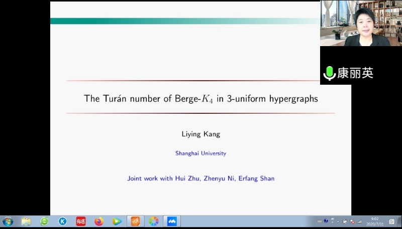 邀请,7月31日上午,上海大学康丽英教授在腾讯会议作了题为《The Turan number of Berge-$K_4$ in 3-uniform hypergraphs》的报告。相关师生聆听了此次报告,报告由卢福良教授主持。
