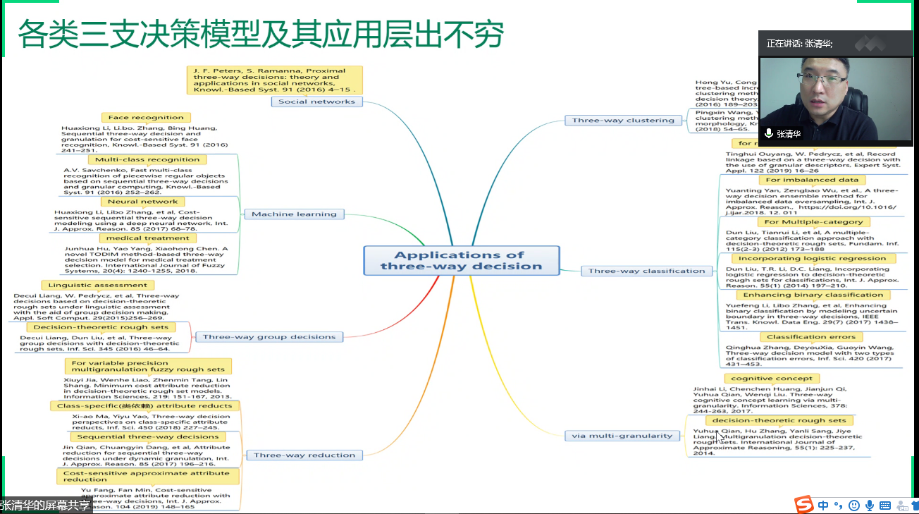 邀请,7月7日下午,重庆邮电大学张清华教授在腾讯会议作了题为《三支决策模型研究及应用》的报告。相关师生聆听了此次报告,报告由廖淑娇副教授主持。