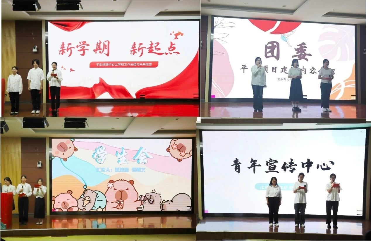 活动开始之初,各学生组织结合PPT对本组织上一学期展开的各项活动和工作进行回溯,总结了工作的成效并对未来的工作作出规划与展望。