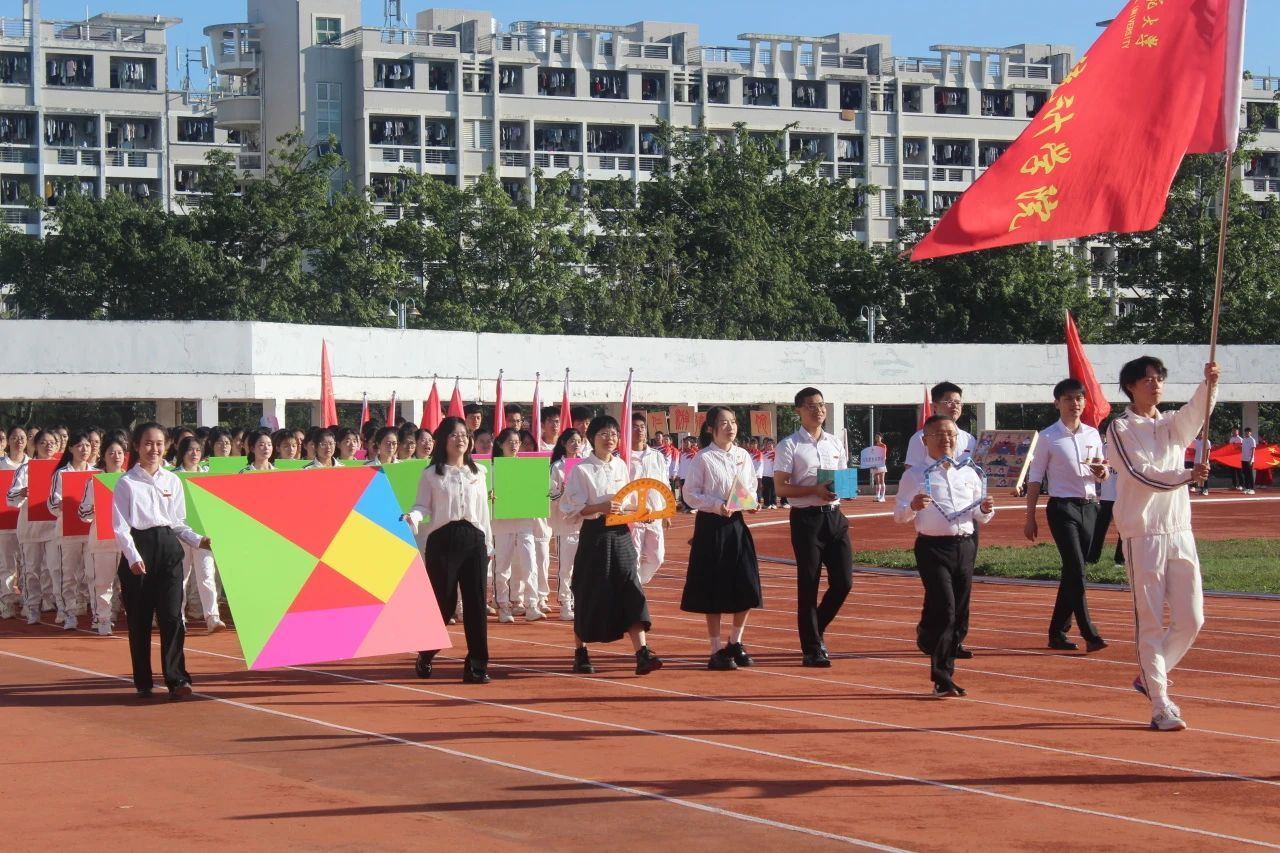 操场上,五彩斑斓的彩旗随风招展,各学院的方阵队伍整装待发。随着音乐的响起,鼓点激昂,国旗队、校旗队、彩旗队及各学院方阵依次入场,步伐矫健,口号响亮,洋溢着青春的活力与朝气。