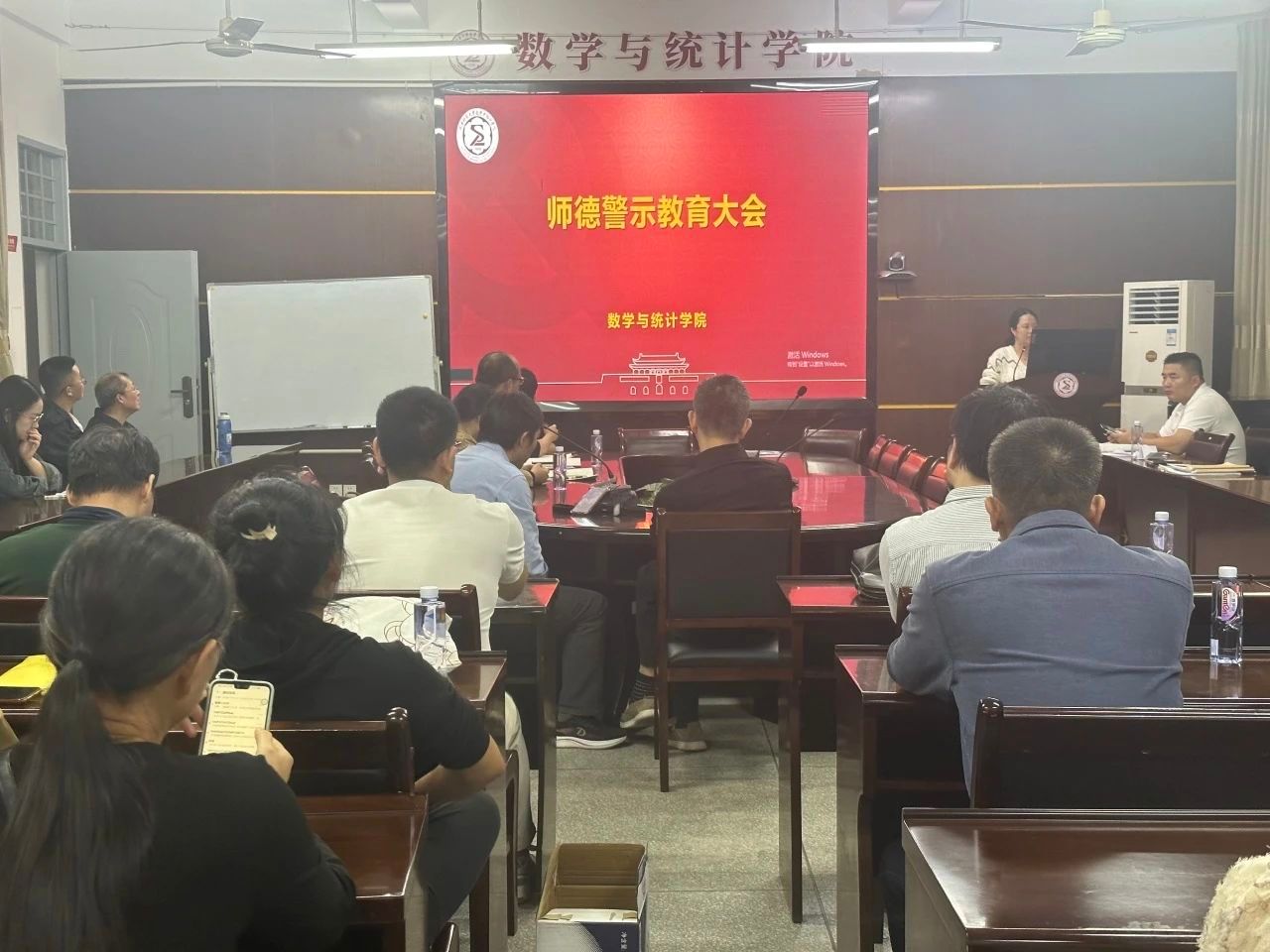 于砺志楼114召开师德师风警示教育大会,全体教职工参加会议。