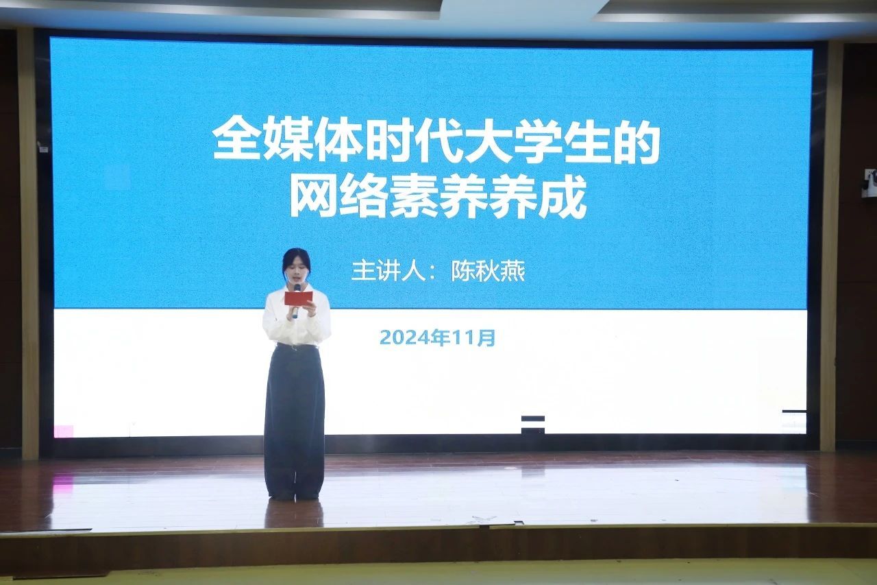 接着,陈秋燕老师从网络素养的养成和如何进行网络宣传两方面展开讲解。她指出,要用辩证角度看待网络带来的信息,树立正确的政治意识,站好政治立场,同时也要形成良好的上网习惯。