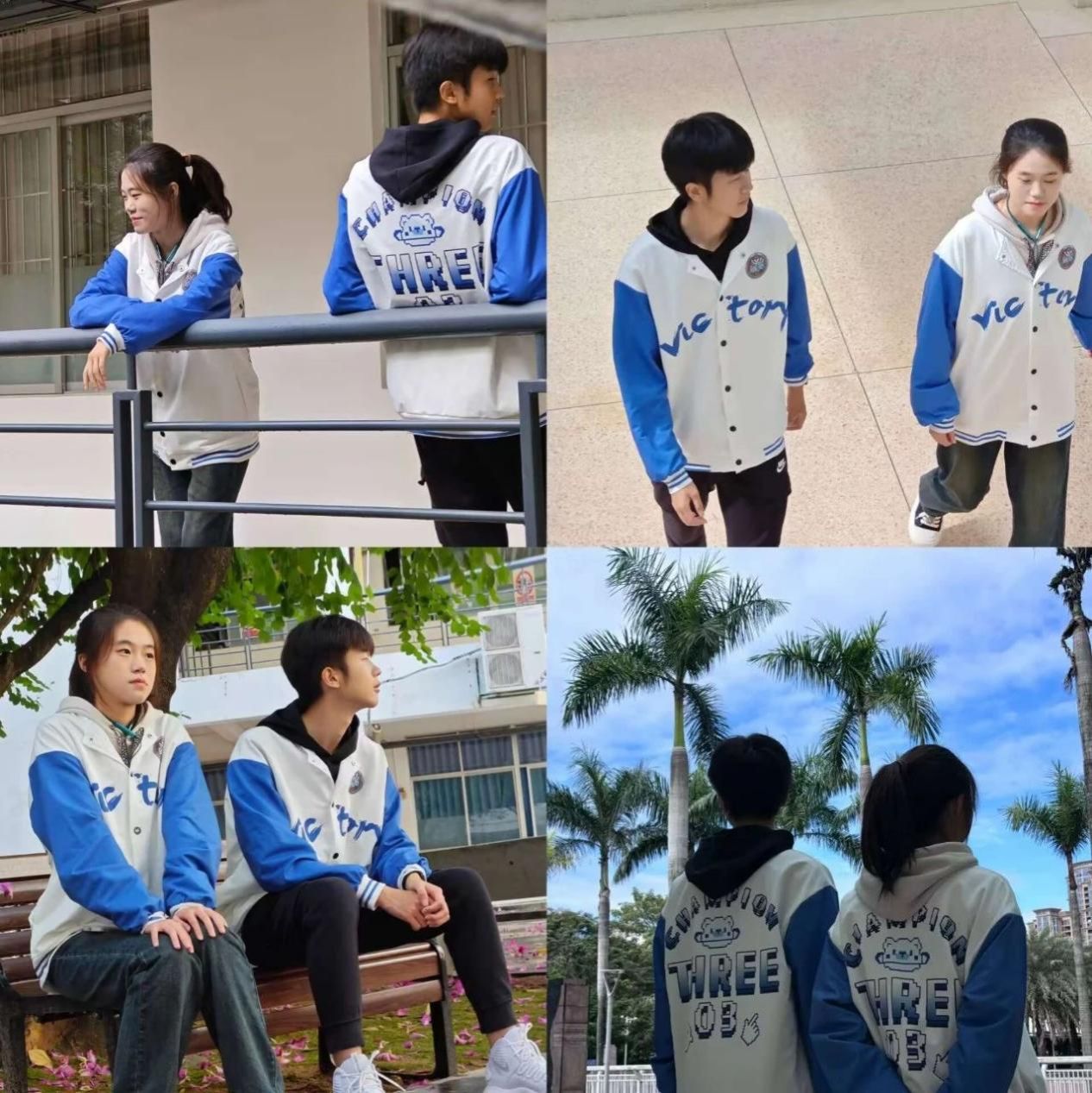 班服的款式是棒球服,以深蓝作为主色调,白色与之搭配,形成鲜明对比,让整体看起来格外清爽、醒目。此外深蓝色通常象征着沉稳、可靠,提醒我们保持冷静、专业的态度。胸前的英文单词寓意“砥砺前行,奋勇前行”,同时也有我们24数据班大家庭在未来的学习生活中互帮互助,砥砺前行,大步迈进的美好寓意。背面采用数据分析的图案与我们的数据专业对口。