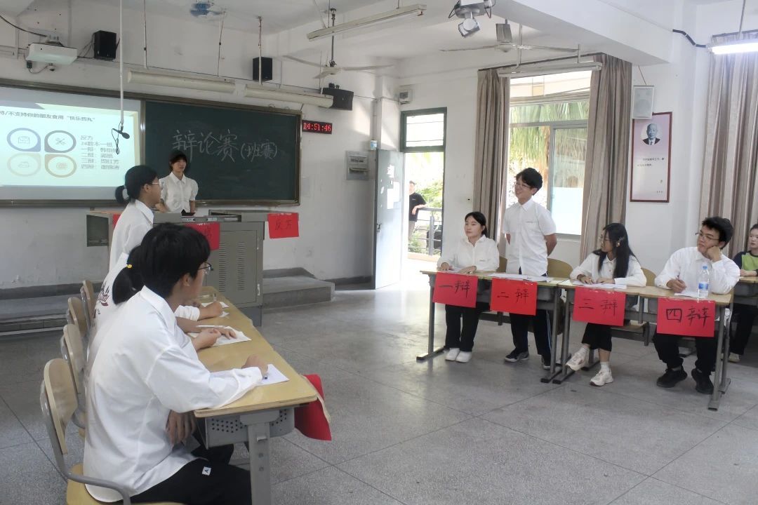 本次比赛24数学师4班为正方,24数学师1班为反方,比赛过程中正反双方辩手围绕“‘快乐药丸’合成简单,成本低廉,一次食用能带来数小时的美梦成真的幻觉体验,但已知常年食用‘快乐药丸’可能提高某些癌症的发病率,你的朋友很想食用……你支持/不支持你的朋友食用‘快乐药丸’”展开辩论。辩手们言辞犀利,逻辑严密,他们或慷慨陈词,或机智反问。观点交锋中火花四溅,现场气氛紧张而热烈,为观众呈现了一场智慧与激情交织的辩论盛宴。