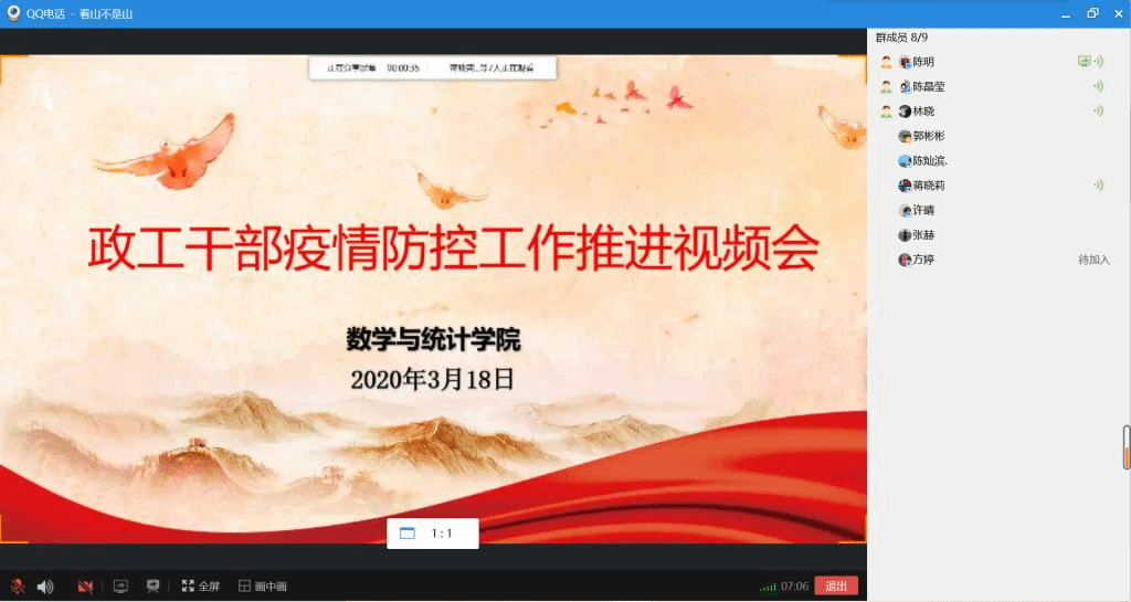 召开政工干部疫情防控工作推进视频会,学院党委书记陈晶莹、副书记林晓、团委书记陈明及各年级辅导员参与本次会议,会议由林晓主持。