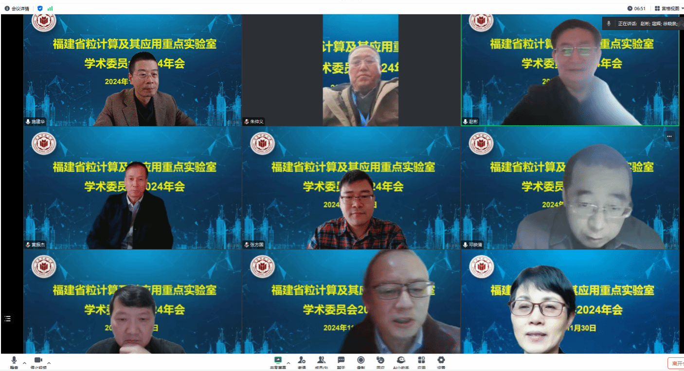 11月30日,福建省粒计算及其应用重点实验室学术委员会2024年会在腾讯会议线上召开,会议由学术委员会主任赵彬教授主持。