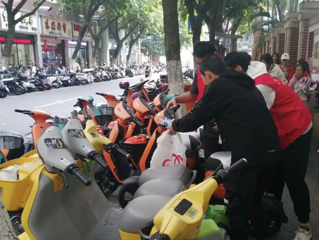 活动当天,同学们身着志愿服,手持垃圾袋,从东门出发,沿街而行。路上,同学们弯腰拾起着地上的垃圾,伸手摆好路旁的共享电动车,默默奉献,用行动诠释“绿水青山就是金山银山”的环保理念。随着劳动的进行,原本杂乱的街道逐渐恢复整洁,大家体会到付出的意义,也在劳动中获得了一次心灵的洗礼。