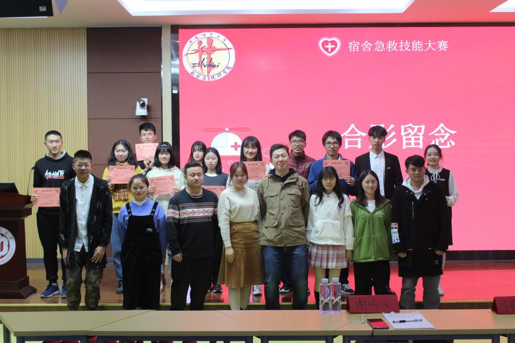 于12月14日在砺志楼120教室举办急救技能大赛。校红十字会急救培训师谢巧云老师、秘书长阮敏慧老师、委员王芳老师、学院2019级辅导员张赫老师、各大学生组织负责人及学生代表出席本次活动。