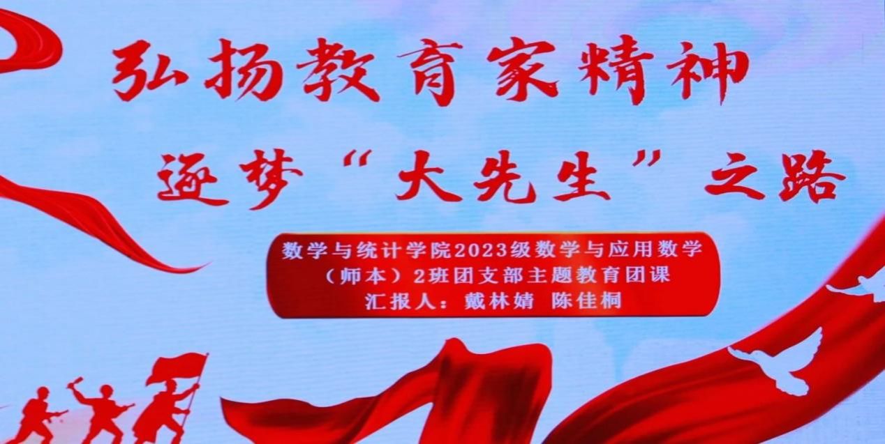 2023级数学与应用数学(师本)2班团支部开展“弘扬教育家精神,逐梦‘大先生’之路”主题团课。校团委副书记李富荣、院团委副书记郑珊,23级辅导员朱旭泽参加了本次主题团日活动。