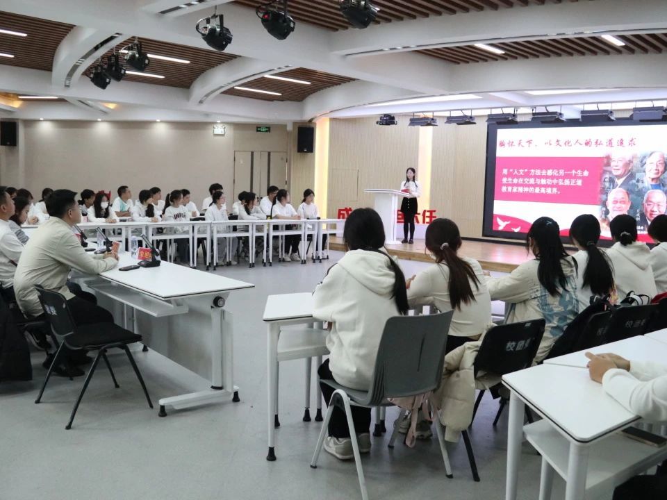 会上,班级团支书戴林婧从今年九月开展的全国教育大会出发,围绕“教育家精神”这一主题,结合新时代中国特有形势与“师范专业”这一特色,带领团支部深入解读学习了“理想信念” 、“道德情操”等六方面教育家精神的重要精神内涵,引领团支部成员分享交流了自身在学院举办的志愿服务中的感悟以及教育家精神的感人故事。