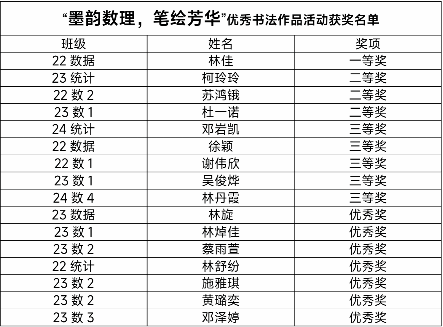 开展“墨韵数理,笔绘芳华”书法作品征集活动,本次活动得到了同学们的积极响应,收到来自21级-24级同学们众多风格各异、精彩纷呈的书法作品。