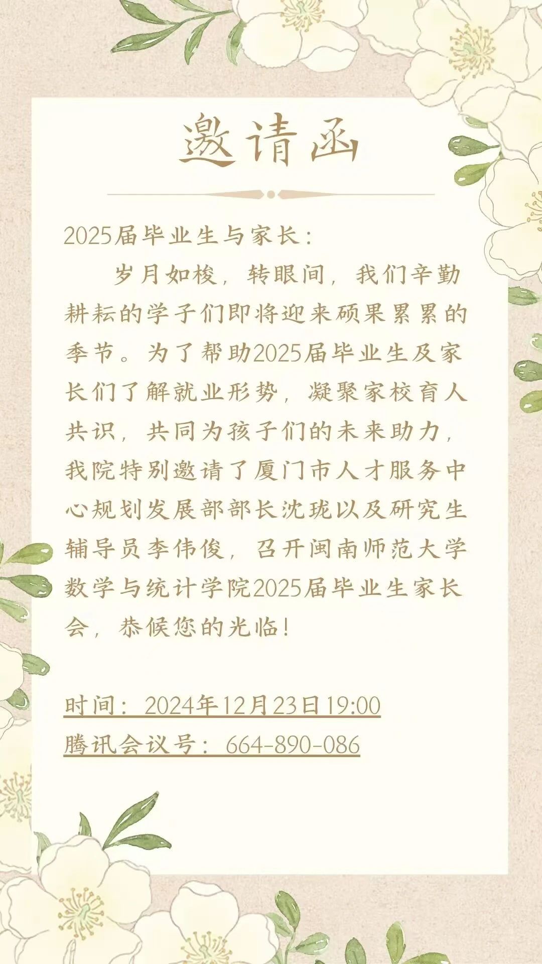 暨毕业生线上家长会邀请函