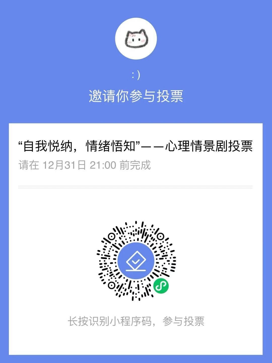 以下各队优秀的心理剧作品,到底哪个队伍更能打动你呢?小π相信,你的心中已经有了答案,快为他们投上宝贵的一票吧~