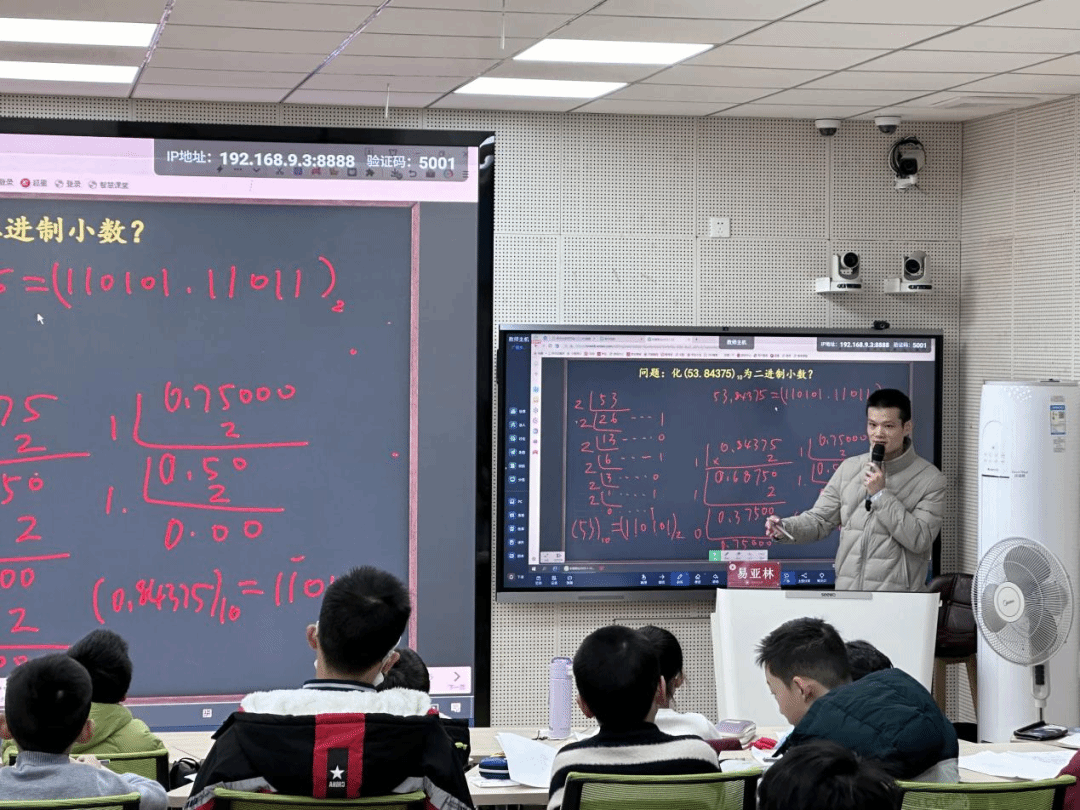 1月12日上午,易亚林老师精彩分享了“初等数论”的相关知识。他从二进制与十进制的转化讲起,帮助学员们掌握进制转换的普遍规律并学会应用;接着通过整除概念逐步引导至质因数与分解质因数的实践,让学员们深刻体会到数学分解的智慧与美感。此外,他还从带余除法讲到中国剩余定理的应用,带领学员们体会中国古代数学智慧。在精心设计的游戏环节中,学员们进一步领略了数论世界的无穷魅力。