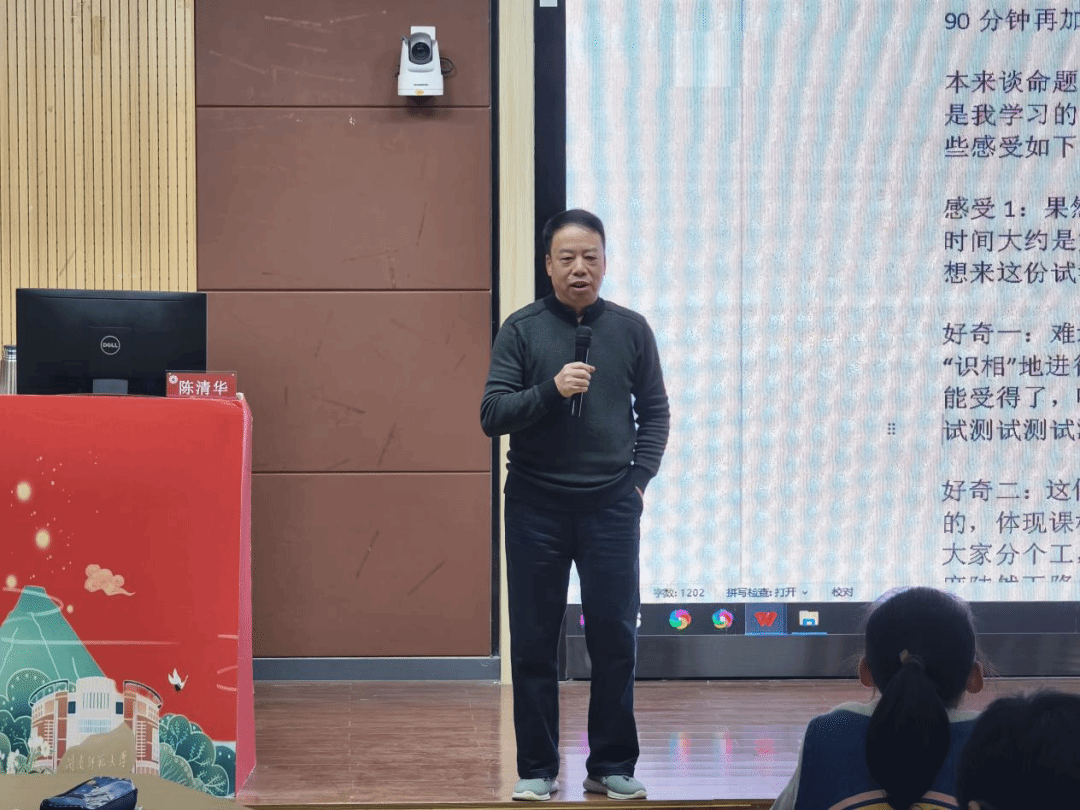 教授、中小学拔尖创新人才早期发现与培养品牌活动“德旺杯”的发起人之一陈清华教授,同学员们一起探索数字中的乐趣,陈教授以“2025”这个有特殊意义的数字开篇,介绍了“十全十美的自然数”拥有的十大性质,紧接着借用有趣的小故事引入“数学归纳法”“卡布列克数”等知识点,让学员们能够将几何与初等数论基础相结合,培养学员运用初等数论知识解决几何问题能力,同时加深学员对这两个领域基本概念和原理的理解。