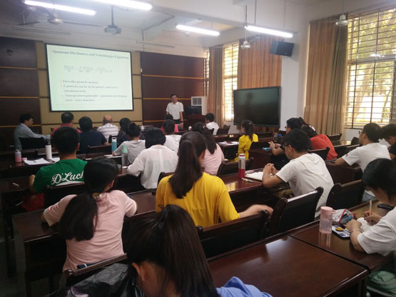 邀请,6月21日上午,美国路易斯安那理工大学戴伟忠教授在砺志楼114作了《求解薛定谔方程的广义FDTD方法》的报告。相关老师聆听了此次报告,报告由王晓峰教授主持。