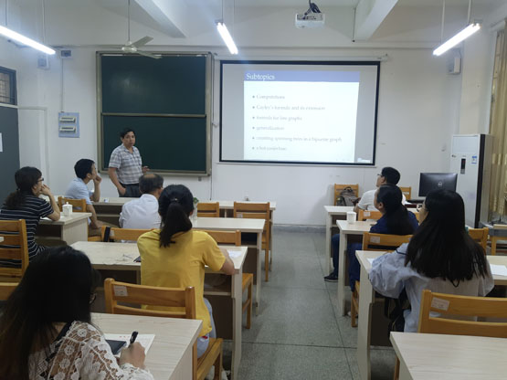 邀请,6月10日上午,新加坡南洋理工大学董峰明教授在砺志楼105作了《Counting spanning trees by Cayley’s formula and its extensions》的报告。相关师生聆听了此次报告。