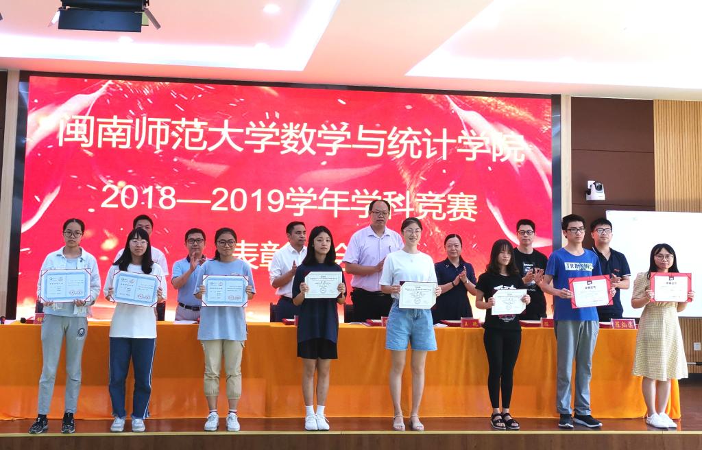 据悉,一直以来学院高度重视与支持大学生科技创新发展,将大学生的学科竞赛作为人才培养的重要组成部分。通过举办或组织学生参加各类学科竞赛,挖掘学生的潜力,培养学生分析问题和解决问题的能力。2018-2019学年,学院组织学生参加数学类竞赛获得丰硕的成果。在高教社杯大学生数学建模竞赛、全国研究生数学建模大赛、全国大学生数学建模大赛、美国大学生数学建模竞赛、全国大学生数学竞赛、中国高校SAS数据分析大赛、“泰迪杯”数据挖掘挑战赛、东芝杯•中国师范大学理科师范生教学技能创新大赛、全国大学生市场调查与分析大赛等多项比赛中,获得奖项109项,其中国际级奖项1项,国家级奖项25项,省级奖项53项,校级奖项30项,共计223人次获奖。