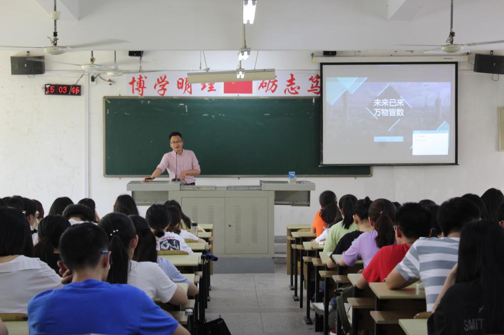 林老师详细地阐明了获取数据、管理数据、分析数据以及挖掘数据价值的基础知识和关键技术,包括数据可视化技术。同时他提出大数据行业的一些名人案例,与学生们分享对大数据行业的认知、一线企业的技术担当、在大数据行业实践中的心得体会和奇闻轶事、资深人力资源专家观点,帮助学生从更深层次了解大数据行业的从业情况。吴老师以区块链发展简史的介绍作为重点,分别从区块链的含义、发展、应用前景、政府支持和人才需求这几方面进行讲述,并在经典案例探讨的过程中,着重阐述区块链的前景未来、区块链职场的专业问题。在场学生与讲座嘉宾积极互动,受益匪浅。