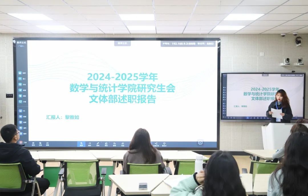 文体部积极策划文艺和体育活动,上学期,他们开展研究生趣味数学对抗赛、协助举办院迎新晚会和研究生与本科生篮球赛,促进了不同年级同学间的交流互动。同时,文体部也认识到工作中存在活动参与度不高、资源配置不均等问题。新学期,他们将优化活动策划流程,引入更多创新元素,并强化反馈机制,依据同学们的意见不断改进。