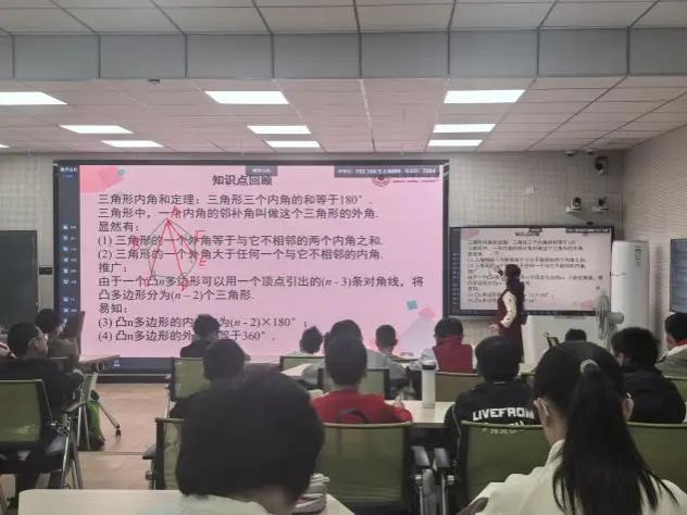 在本节数学几何的课堂中,林燕斌老师采用由浅入深、层层递进的方式为同学们带来精彩课堂,生动又不失理性,有趣又不失风采。林老师从基础概念与简单例题入手,逐步引导同学们采用多种方法解决几何问题,深入探究几何图形原理和解题思路。与此同时,林老师也持续向学生抛出启发性问题,鼓励他们自主思考,从而不断拓展思维边界。这种教学模式能有效激发学生内心深处对数学的好奇与探索欲望,提升他们学习数学的兴趣,有助于数学能力的稳步提高。