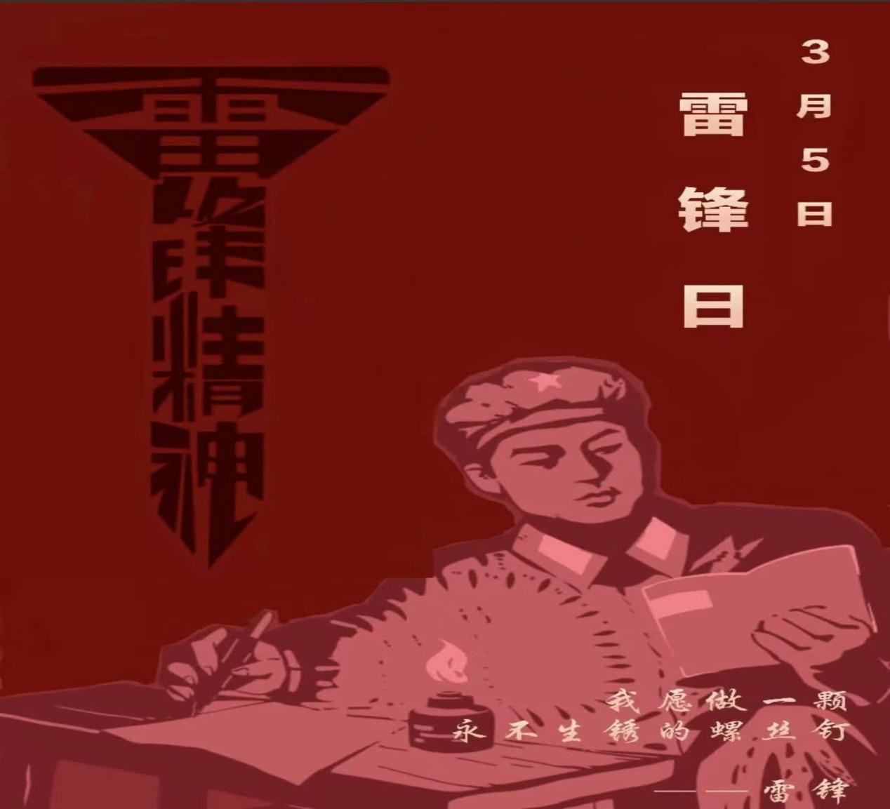 海报以炽烈中国红为底,以“雷锋精神”四个字构成螺丝钉跃然其间,象征“钉子精神”的执着与奉献,呼吁人人践行微善举,以行动凝聚时代暖流,传承不朽信仰,以点滴行动续写新时代雷锋日记。