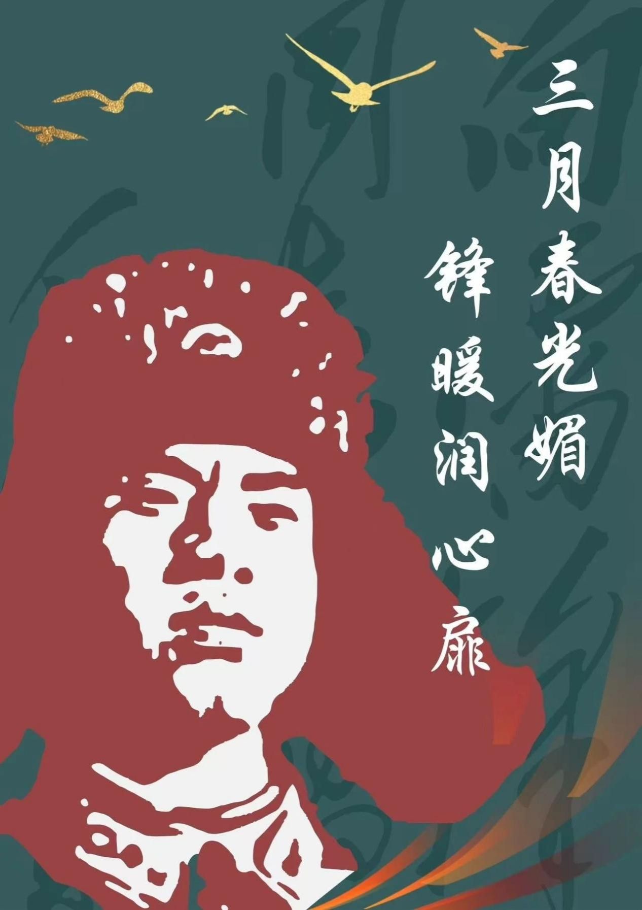 这幅作品以雷锋形象为主视觉,辅以 “三月春光媚,锋暖润心扉” 文字,结合飞鸟、艺术化背景元素,既呈现三月春日氛围,又借雷锋形象传递其精神如春光温暖人心,彰显对奉献精神的礼赞与传承。