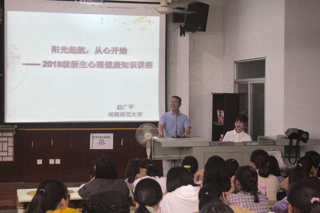 为进一步提高新生的心理素质,促进学生身心健康,10月25日晚, 2018级新生“阳光起航,从心开始”心理健康专题讲座在砺志楼120举行。讲座由心理指导老师赵广平作为主讲人,学院2018级全体新生参加此次讲座。