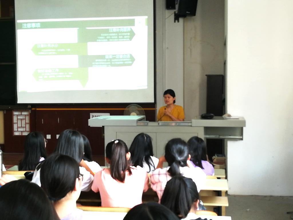 于砺志120教室举行2018级军训动员大会,学院全体新生及辅导员蒋晓莉老师参加动员大会。