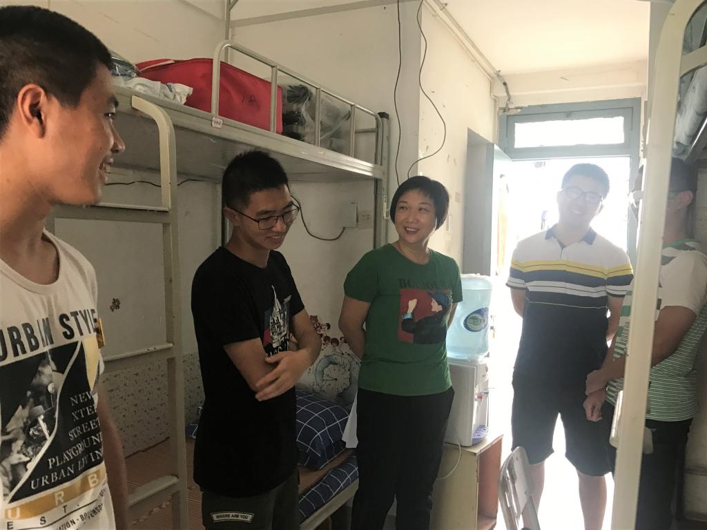 9月15日下午,学院党委书记陈晶莹及各级辅导员走访2018级新生宿舍。老师们询问了新生在学习方面的规划、大学宿舍生活方面的适应困难,并要求学生们新学期做好新的规划,努力适应大学新生活。学生对老师们的到来倍感兴奋,气氛其乐融融。
