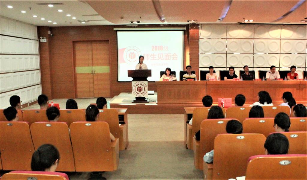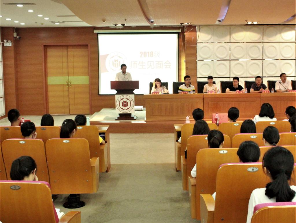2018级师生见面会在逸夫图书馆5楼会议厅隆重举行。学院主要党政负责人、专业教师、办公室主任、辅导员、 363名本科新生、33名研究生新生及1名外籍研究生新生参加了见面会。