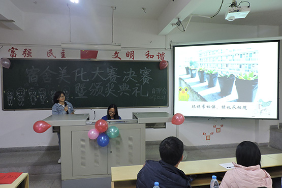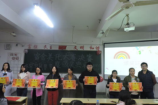 于十一月举办了宿舍美化大赛初赛,并在12月21日晚于砺志楼315教室举行宿舍美化大赛决赛暨颁奖典礼。辅导员及各学生组织代表出席此次活动。