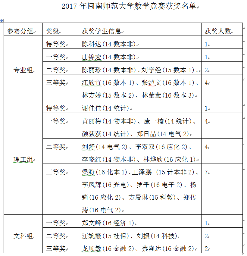 大学数学竞赛试卷评阅、评奖工作已于2017年12月2日结束。针对此次竞赛中成绩特别突出的两位选手,经竞赛组委会讨论决定,特设理工组和专业组特等奖奖项。为严肃竞赛纪律,杜绝不当之风,竞赛组委会决定设立获奖结果争议期,为期7天(2017年12月6-12日)。现将拟获奖名单(见附件)公布如下,公开征求广大师生的意见。