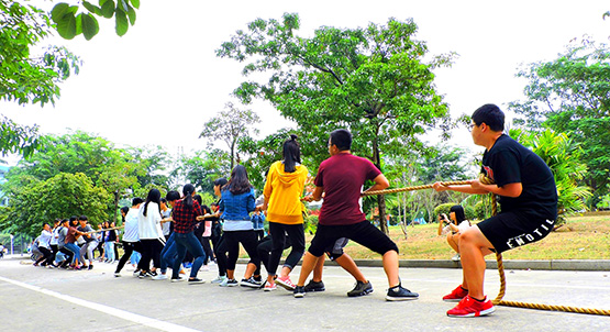 在游戏环节中,“你懵我懵”、“吹呀吹呀我的骄傲放纵”、“你划我猜”、“记忆百分百”、“疯狂的嘶吼”、“表情包大战”、“大黑牛的愤怒”等精心策划的游戏,在考验参赛团队动手动脑能力的同时,也提升了团队之间的默契与相互信任程度。在拔河比赛中,学生们持着友谊第一、比赛第二的态度,以坚韧不拔的精神奋力拼搏着,最终2017级信息班以默契的配合和强劲的实力夺得本次拔河比赛的冠军。接下来是紧张刺激的密室逃脱,该活动具有较大的趣味性及挑战性,以新颖的设计思路和不同的主题展现出来,学生们凭借细致的目光、缜密的推理、强健的体魄和齐心协作的信念,最终在规定时间内完成任务。