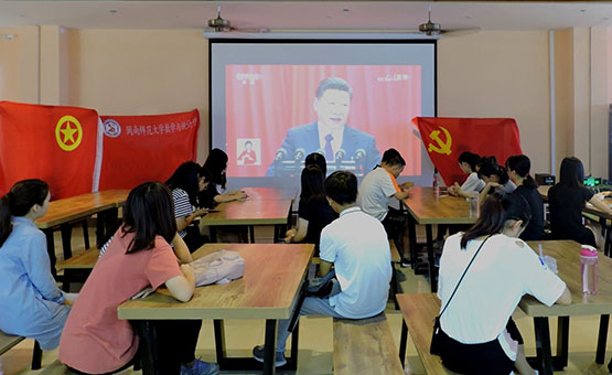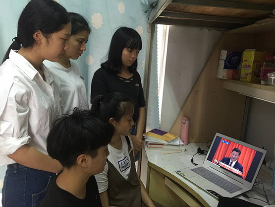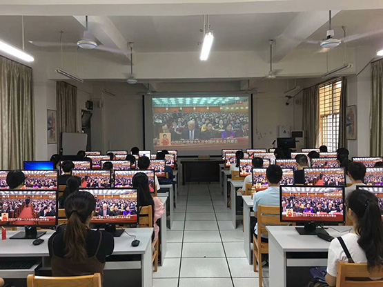 积极组织师生因地制宜,在多媒体教室、学生公寓和食堂等多个场地集中观看开幕会直播,悉心聆听了习近平总书记所作的十九大报告。