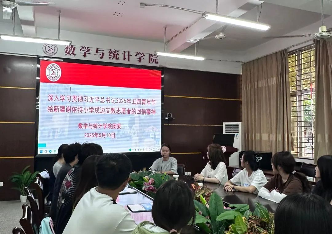 研讨交流中,“责任担当”四字深深烙印在我心中。支教志愿者以青春之我建设边疆的生动实践,印证了新时代青年与祖国同频共振的历史使命。这启示我们:数学人不仅要探索数字奥秘,更要以“强国有我”的担当,将统计建模、数据分析等专业能力应用于乡村振兴、兴边富民等国家战略,在服务中国式现代化的征程中书写青春答卷。
