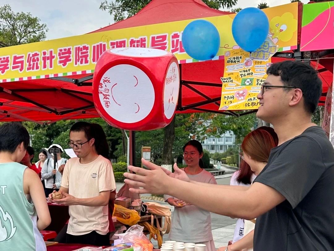 转动特制Emoji骰子,解锁专属心灵任务!骰子六面印着不同表情与趣味指令,从“对自己说一句鼓励的话”到“与身边伙伴击掌加油”,将心理干预转化为游戏挑战。活动以积极心理学为内核,用等概率事件引导理性认知不确定性,让同学们在轻松互动中释放压力,在“踏歌未来”的叙事里培育心理韧性。