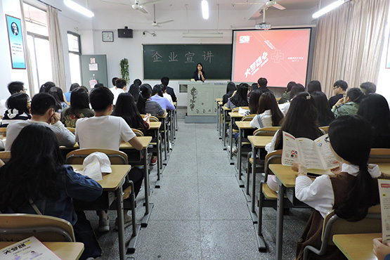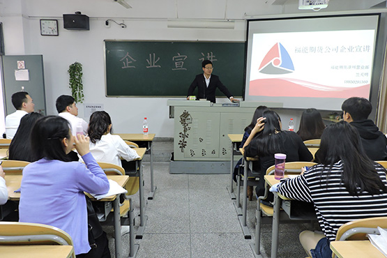 邀请校友返校于砺志楼宣讲。参加此次宣讲会的校友有08级信息与计算科学郭颖、09级金融班兰天明、12级金融班涂英英、12级统计班汤晓毅,他们分别代表快乐学习集团、福能期货公司、平安银行、华福证券进行企业宣讲。