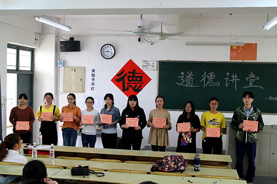 开展的道德讲堂活动,致力于让学生明白什么是“德”,并将以此为标准,努力成为德才兼备、全面发展的当代大学生。