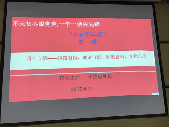 林致远老师主要围绕“道路自信、理论自信、制度自信、文化自信”展开,为学生深入学习习近平总书记系列重要讲话精神和治国理政新理念新思想新战略奠定基础。