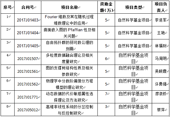 近日,福建省科技厅公布了2017年度福建省自然科学基金项目评审结果,我校共有23项科研项目获准立项,其中ace动漫 共有8项,具体如下。