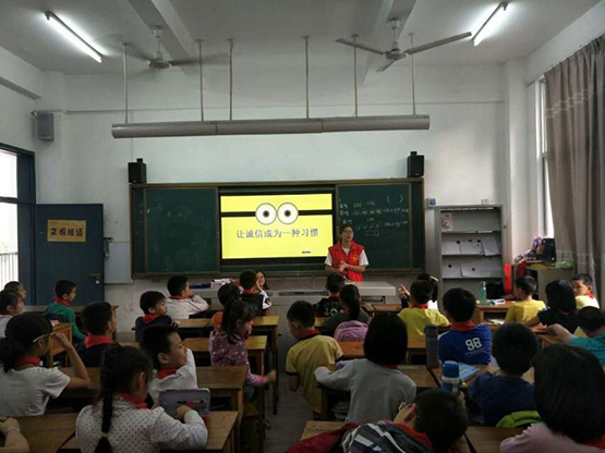 本次班会的主题为“让诚信成为一种习惯”,旨在通过班会课帮助学生树立诚信意识,进而使之养成以诚信为本的正确人生观和价值观。班会课上,志愿者们采用ppt结合视频的形式,与小学生一起浏览诚信经典故事、名言警句等相关内容,通过观看有关诚信的动画片了解诚信的重要性。班会课上,志愿者们还积极与小学生互动,通过提问等形式引导学生对诚信进行思考。除此之外,班会还设有游戏环节:谁是卧底、青蛙跳水、数字传递……充分调动同学们的热情与积极性,使其在游戏中学习。通过本次班会,学生们在生动活泼的氛围中,更形象地认识到诚信的重要性,并表示要学习诚信榜样,争做诚信少年!