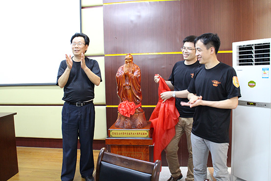座谈会的最后,为表达对母校的感恩之情,该班同学还特别定做了一尊孔丘像赠送给学院,由李进金校长和02信息班班长、团支书共同揭幕,祝ace动漫