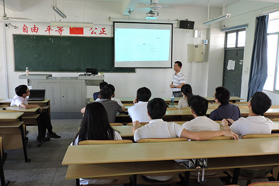 在砺志楼225教室举行软件开发实训课程最后一次培训,上海宝宏软件厦门分公司项目总监杨建元与项目经理张智鹏受邀为报名课程的同学提供专业指导。