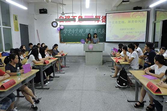 党建中心在砺志楼101举办“学党章党规,展青春风采”之“一战到底”知识竞赛,学院党务秘书林晓、党建中心各学生干部及15级各班优秀学习小组代表参加了本次活动。