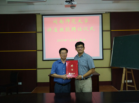 美国加州州立大学圣地亚哥分校终身教授陈建伟被我校聘请为讲座教授,7月23日上午,李进金校长出席聘任仪式并为陈建伟教授颁发聘书。