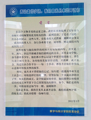 本次活动得到了学院广大校友的大力支持和积极响应,取得了较好的实际效果,“润物无声,细水长流”,学院希望通过历届优秀校友的展示,一方面诠释学校及学院的办学成效,增强在校生对母校的自豪感,潜移默化营造一种良好的校友文化氛围,同时也和毕业校友架起有效的互动沟通桥梁,提高他们的影响力。据悉,学院今后将分阶段陆续推出其他优秀校友展示,构建更长更美的“校友励志风景线”,以此建立学院校友工作的长效机制。