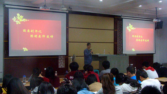 于砺志楼120教室举行第二届团校培训开幕式。院党总支书记徐志怀教授、团委副书记陈明老师参加开幕式。