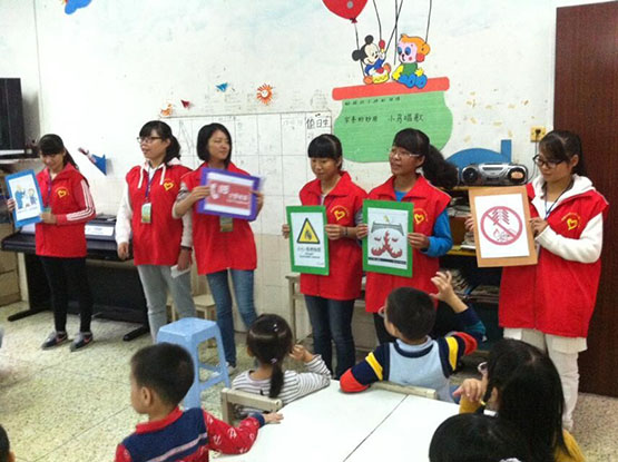 青年志愿者中心的志愿者们于11月6日下午到我校附属实验幼儿园,为幼儿园的小朋友举行“大手拉小手,消防知识我都懂”游园活动。活动分为消防图片展示和解说、消防知识竞赛、消防演练和朗诵消防三字经等环节。