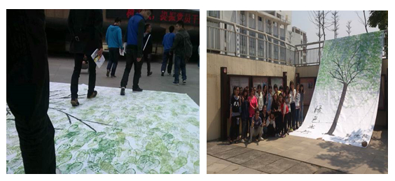 3月25日,为宣扬绿色出行的理念,12数本2班全体同学将一张拼接而成的面积达30平方米的巨型宣传画纸摆放在行明隧道的楼梯边上。过往的同学们踩着颜料经过,渐渐地把枯树枝踩成了绿色。脚下踩出一片绿色,绿色出行,喻意充足,也借此活动来传递着“绿色出行”的理念。